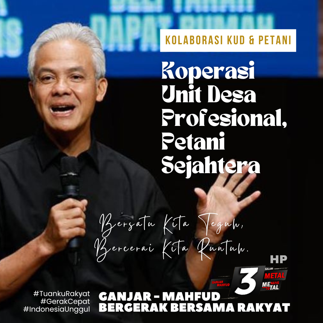 JAKARTA – Calon Presiden (Capres) nomor urut 3, Ganjar Pranowo mendorong para petani di Indonesia untuk memperkuat diri melalui Koperasi Unit Desa (KUD).