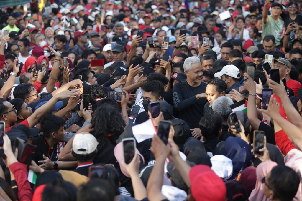 Antusiasme warga Sulawesi Selatan untuk bertemu langsung dengan Capres Nomor Urut 3 pada acara Jalan Sehat Perjuangan yang berlangsung di Jalan Sudirman, Makassar ini pun tak terbendung.