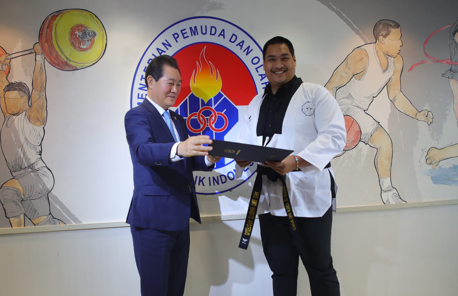 Harapan itu disampaikan Menpora Dito saat menerima courtesy call atau kunjungan kehormatan dari Chairman Kukkiwon, yang hadir bersama Ketua Umum Pengurus Besar Taekwondo Indonesia (PB TI) Richart Tampubolon di Lantai 10 Kantor Kemenpora, Senayan, Jakarta, Senin (26/2).