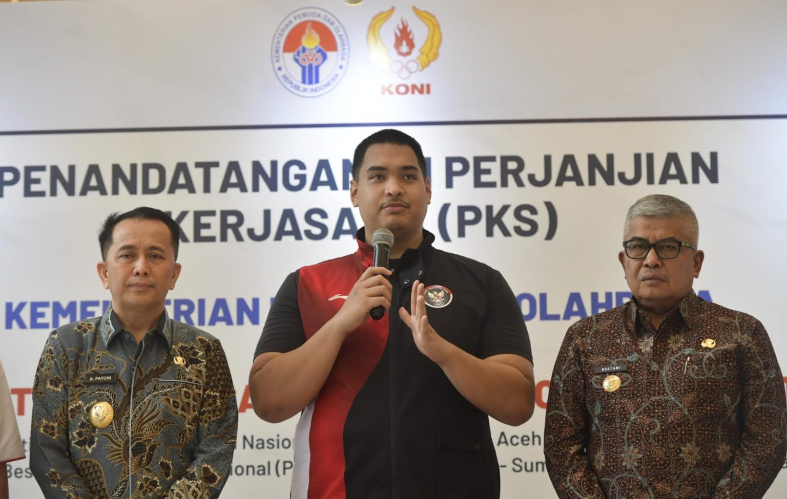 “Dan saya titipkan kepada PB PON khususnya kepada Pj. Gubernur Aceh dan Pj. Gubernur Sumut, semoga PON XXI ini menjadi PON yang bersejarah karena pertama kali diadakan di dua provinsi dan semoga bisa menjadi pilot project dan PON perdana 2 provinsi yang sukses,” kata Menpora Dito saat menyaksikan penandatanganan di Media Center Kemenpora, Jakarta, Kamis (11/7).