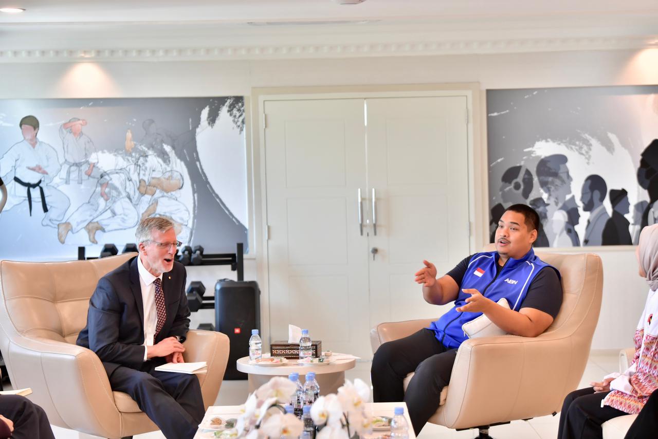Hadir mewakili Dubes Australia untuk Indonesia, Minister Counsellor Political Strategic Communications Adrian Lochrin beserta jajaran menemui Menpora Dito guna membahas peningkatan kerja sama antara kedua negara. Khususnya dalam bidang kepemudaan dan keolahragaan yang menjadi fokus Kemenpora RI.