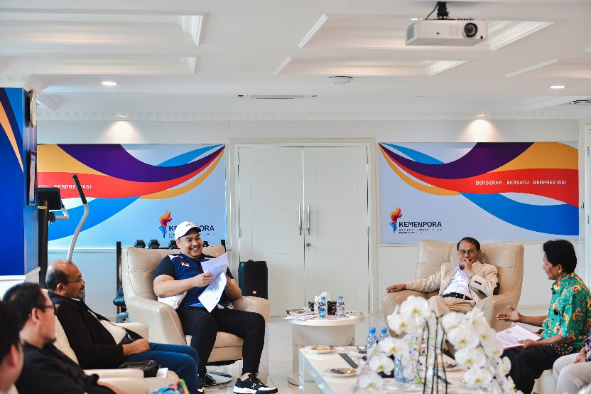 Ikut mendampingi pada tpertemuan tersebut yakni Deputi Peningkatan Prestasi Olahraga Surono, dan Staf Khusus Bidang Hukum dan Kepatuhan Tata Kelola, Alvin Saptamandra Suryohadiprojo.