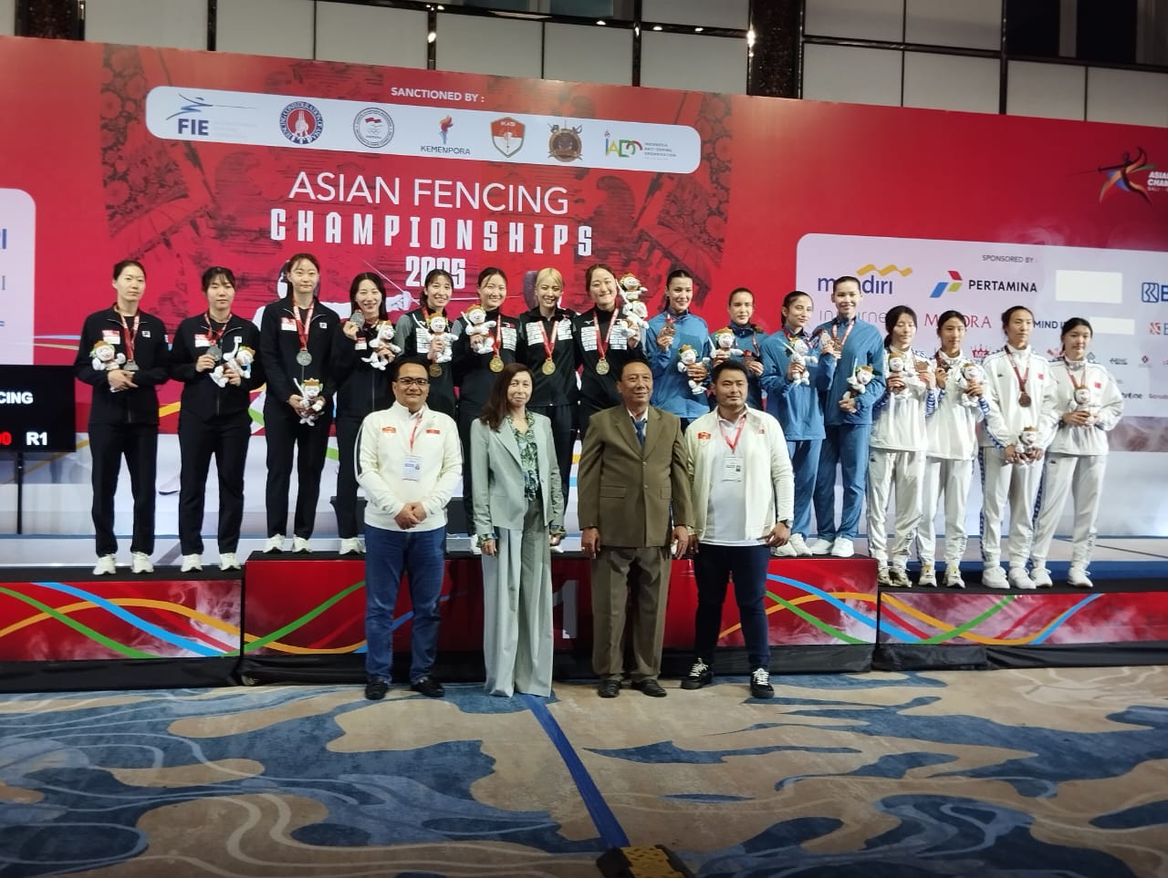 NUSA DUA: Luar biasa. Jepang merajalela pada Kejuaraan Anggar Asia tahun 2025 di Bali seteolah tim putrinya berjaya merebut gelar nomor sabel beregu, Sabtu (21/6/2025).