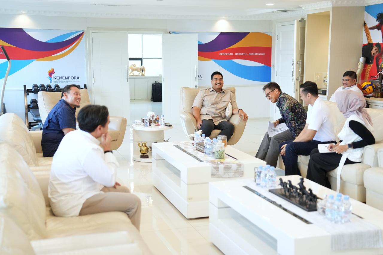 Jakarta: Menteri Pemuda dan Olahraga Republik Indonesia (Menpora RI) Dito Ariotedjo menerima audiensi Pengurus Besar Persatuan Atletik Seluruh Indonesia (PB PASI) di Kantor Kemenpora, Selasa (29/7).